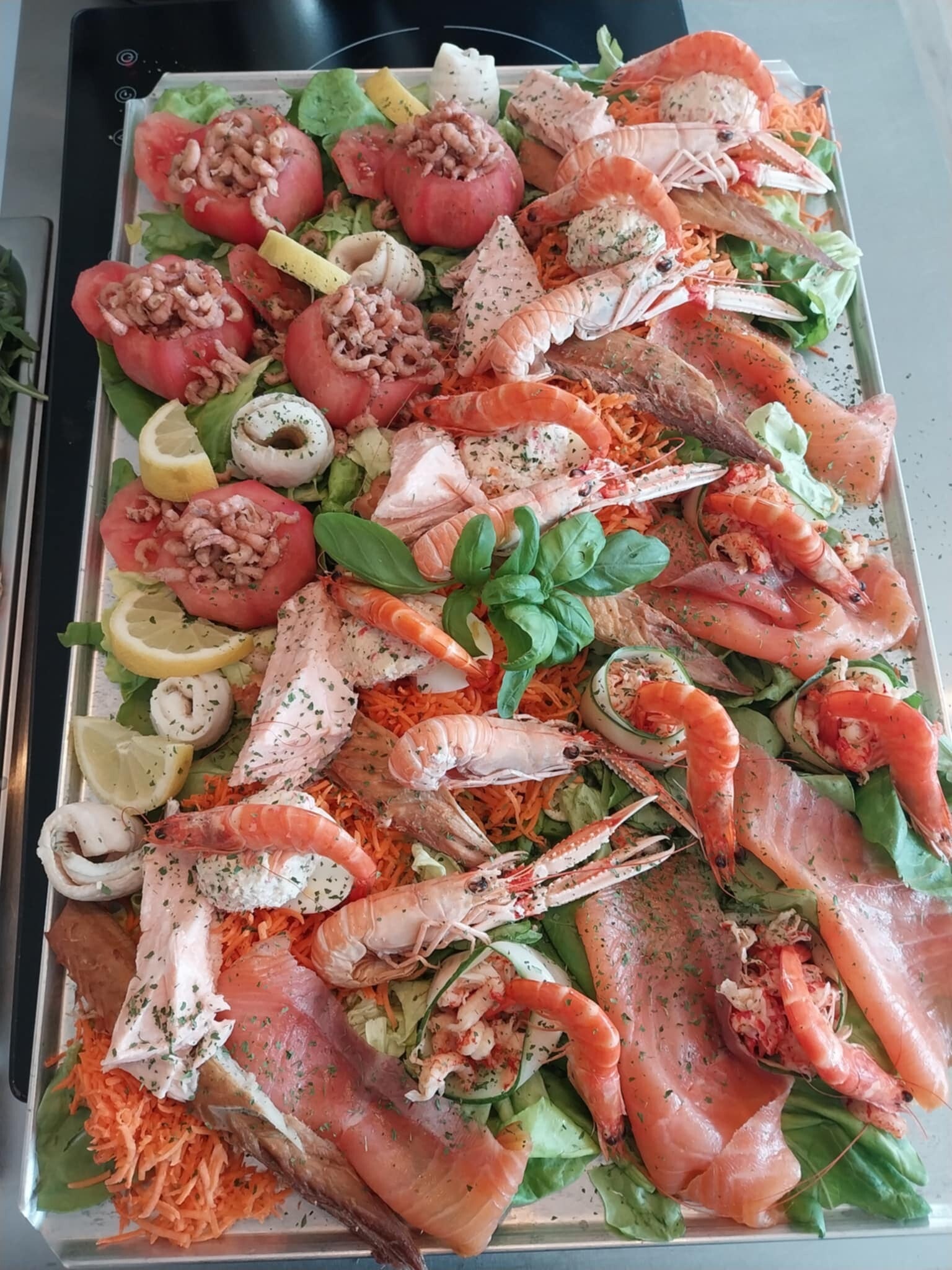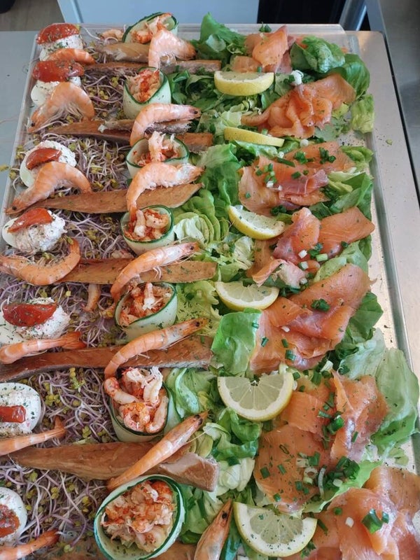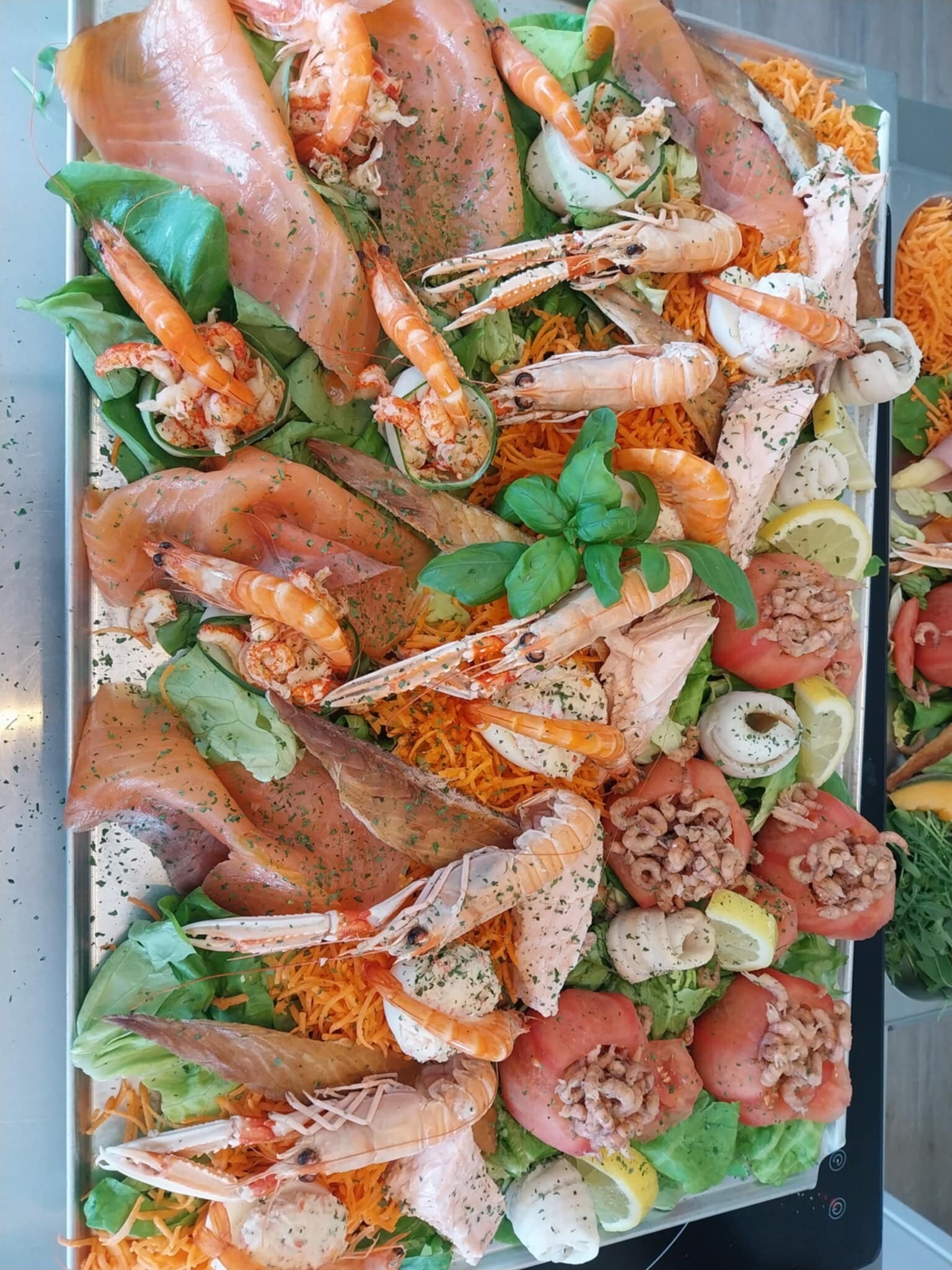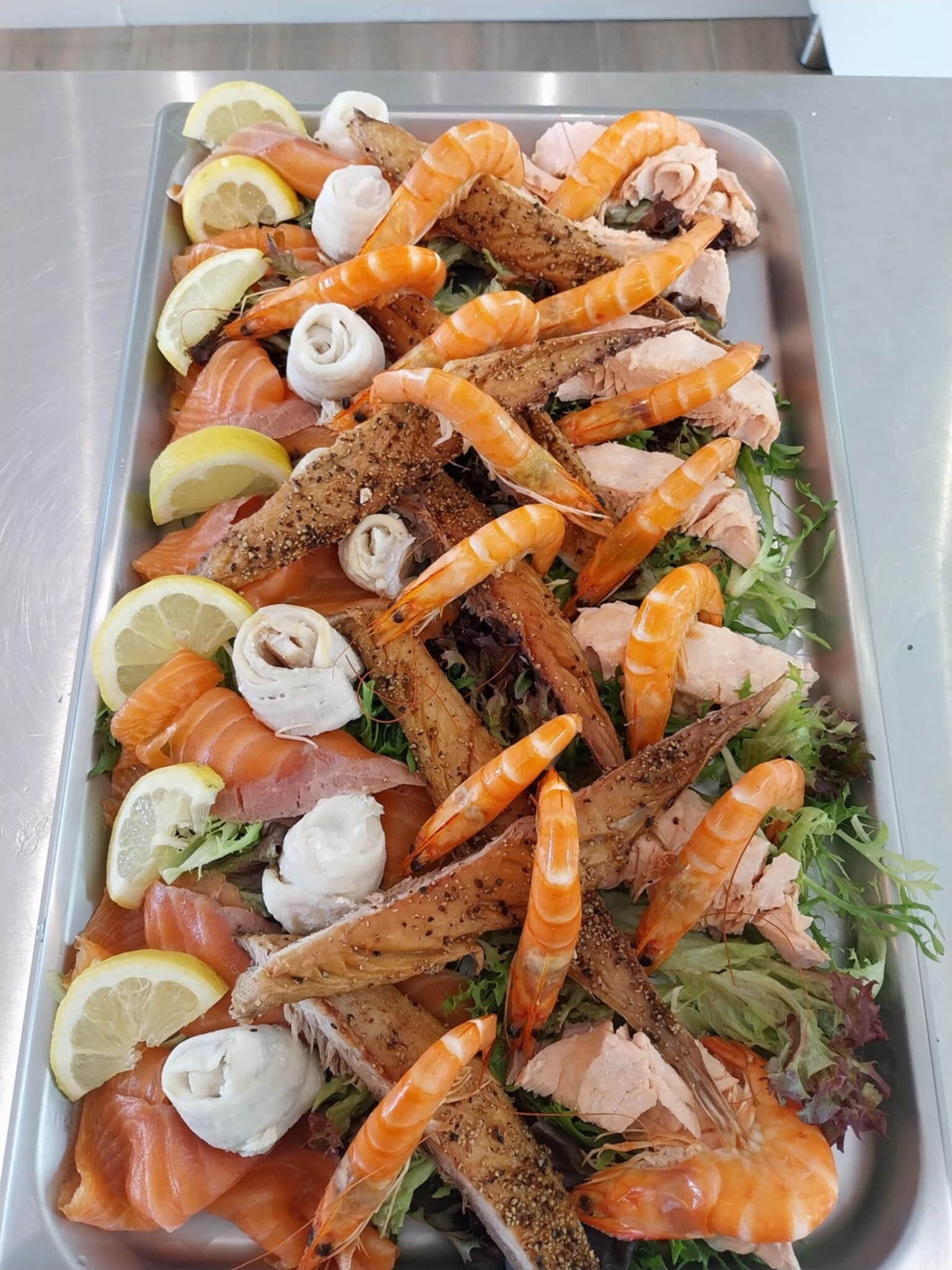 Rijkelijk gevuld visbuffet en vleesbuffet