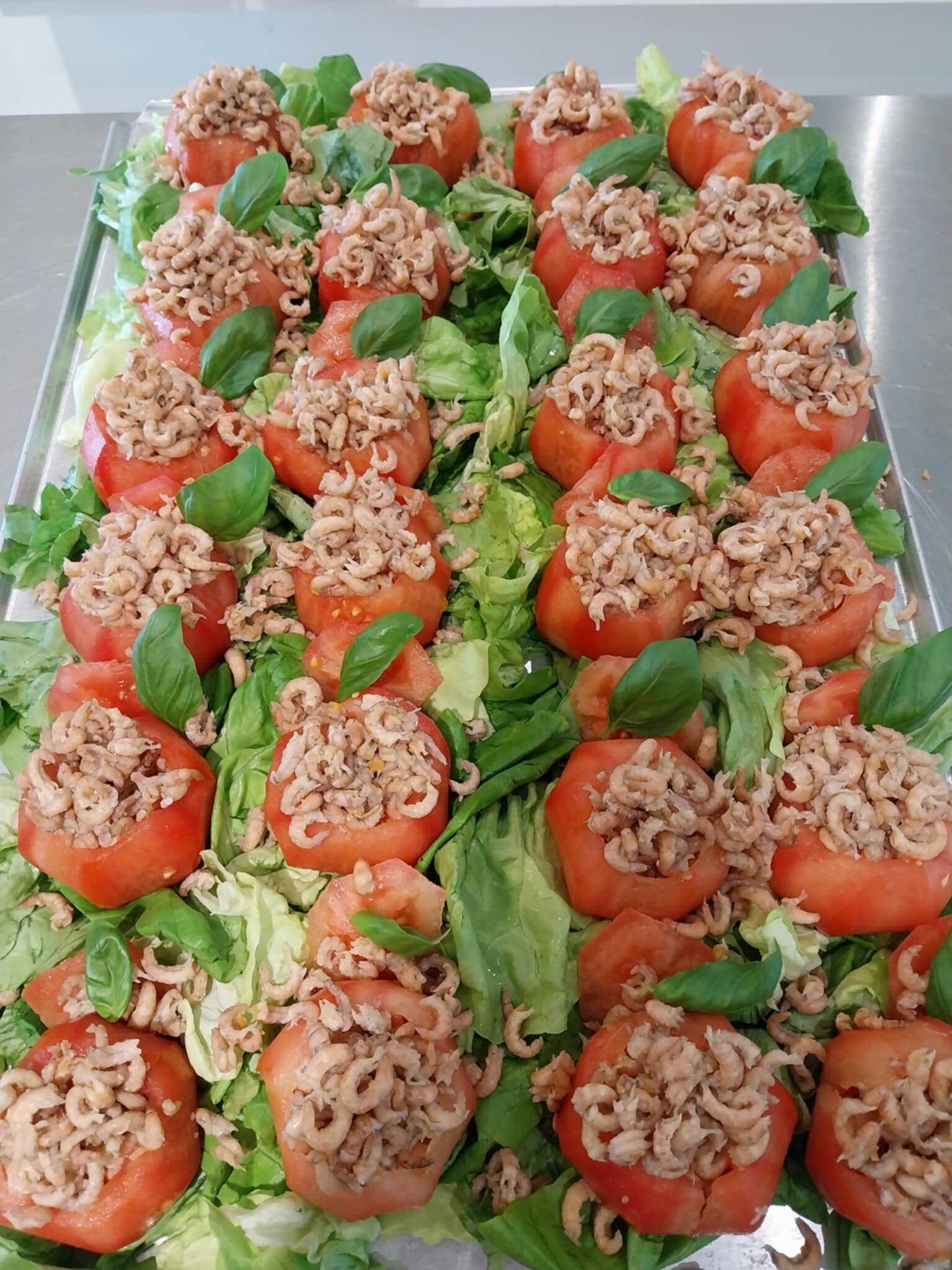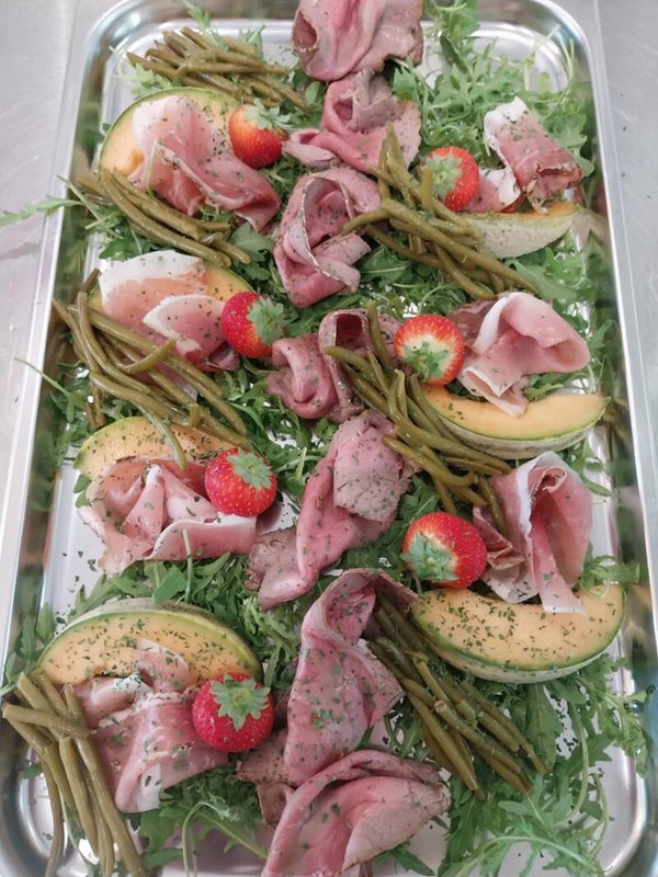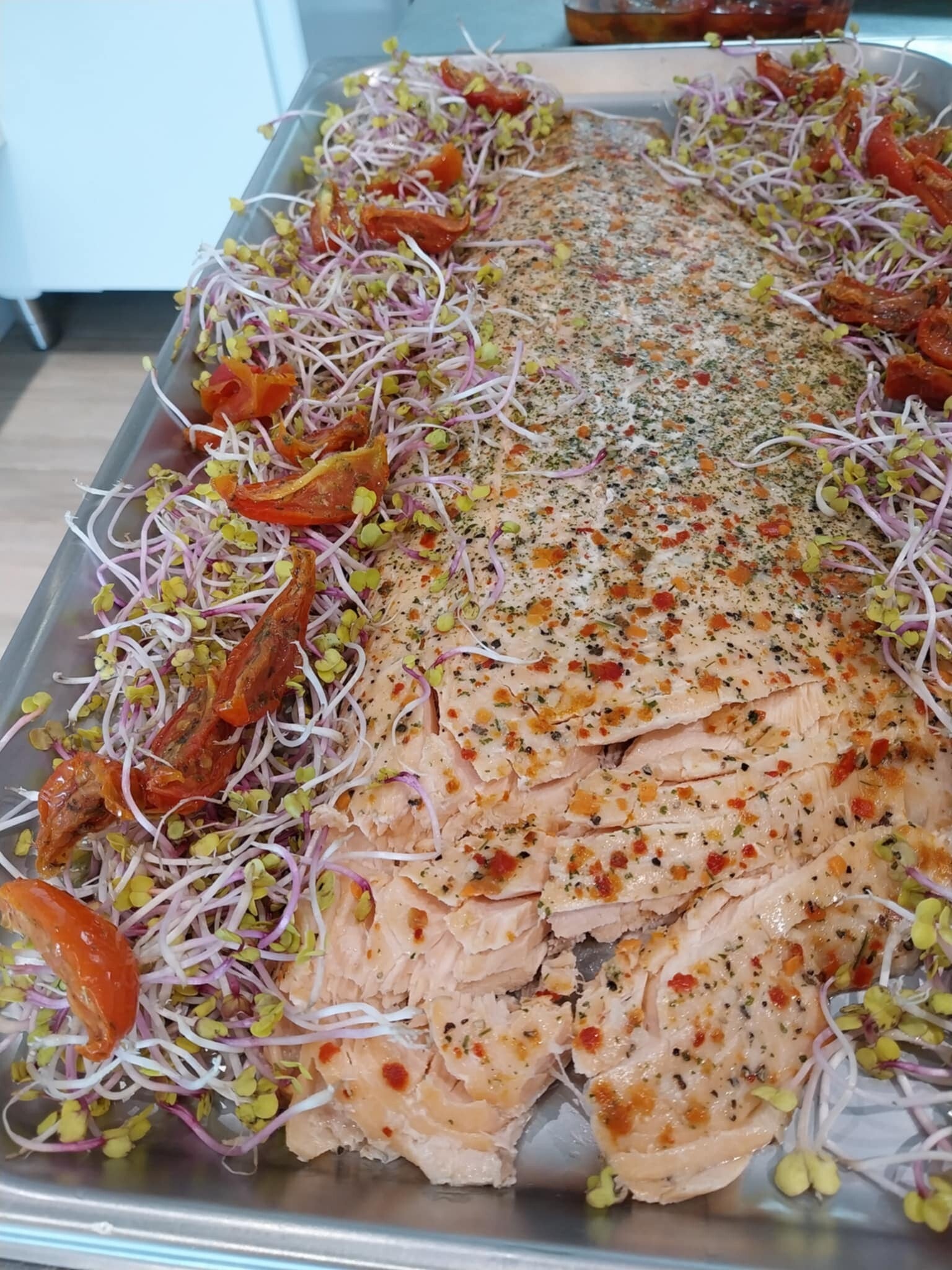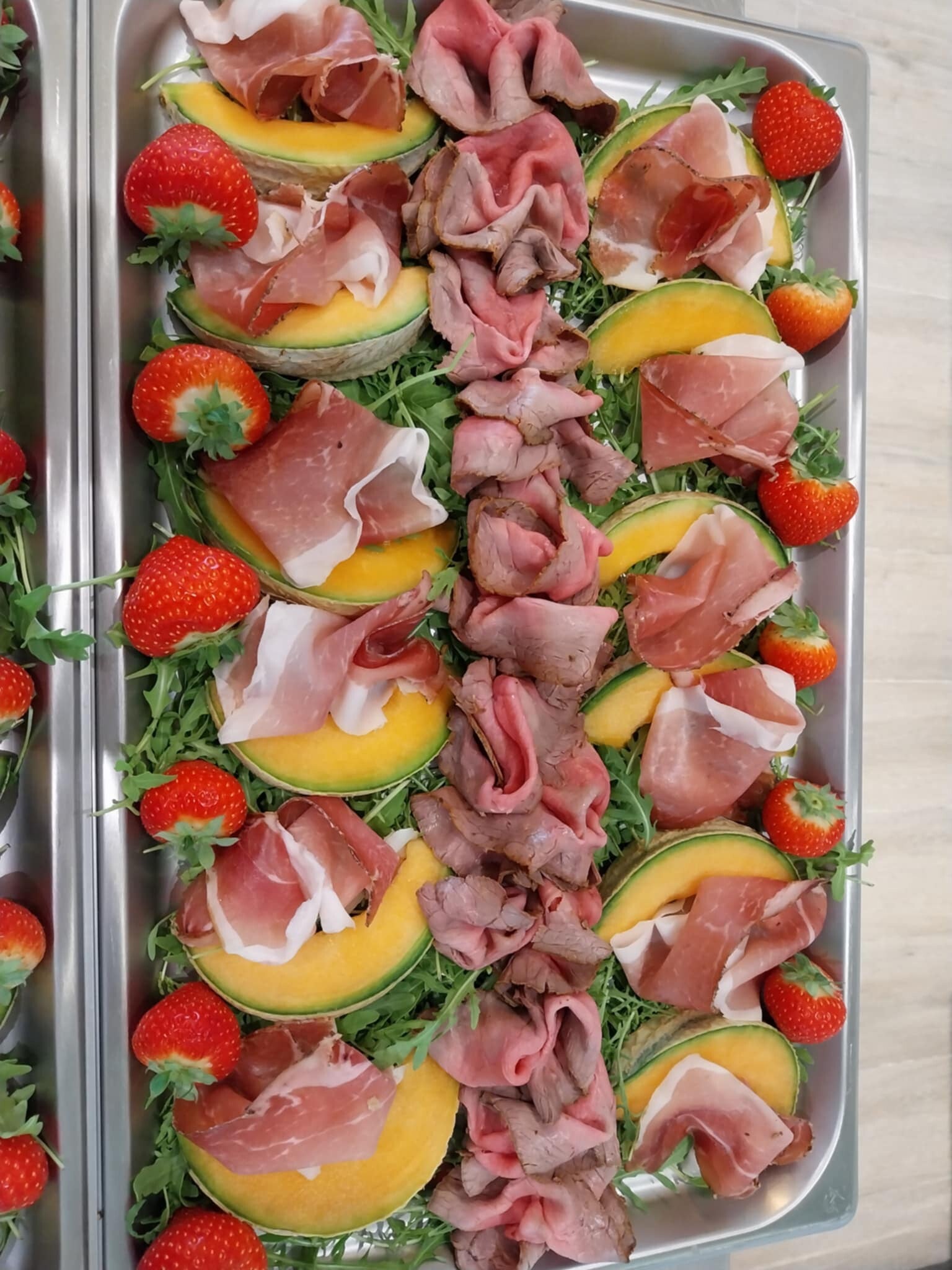 Rijkelijk gevuld visbuffet en vleesbuffet